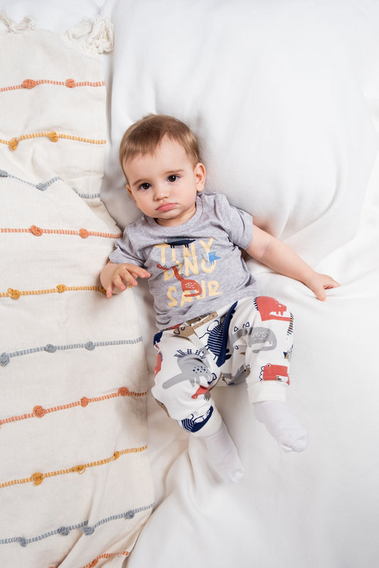 Short Sleeve T-Shirt with (Tiny Dino) Graphic - Grey