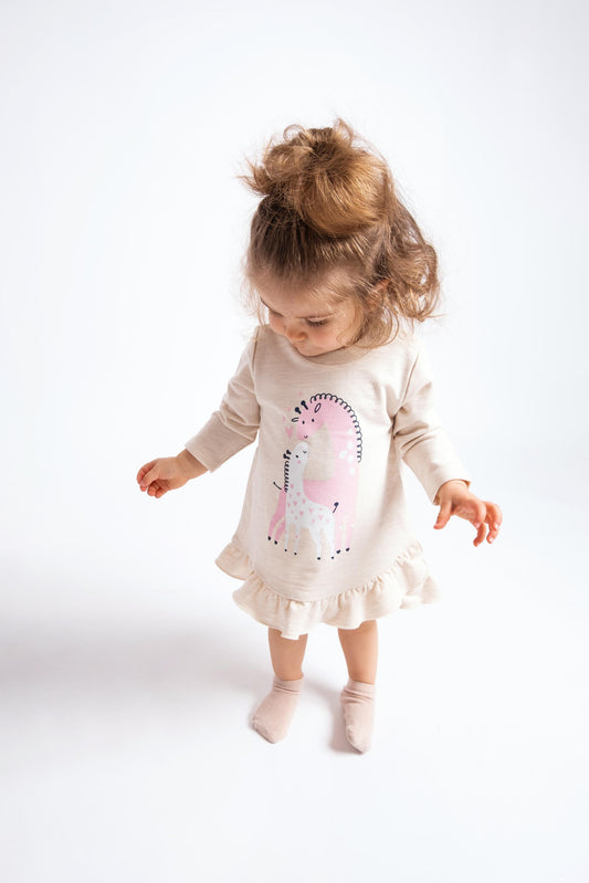Short Sleeve Flutter Trim Dress with (Baby Kiss) Graphic - Ecru