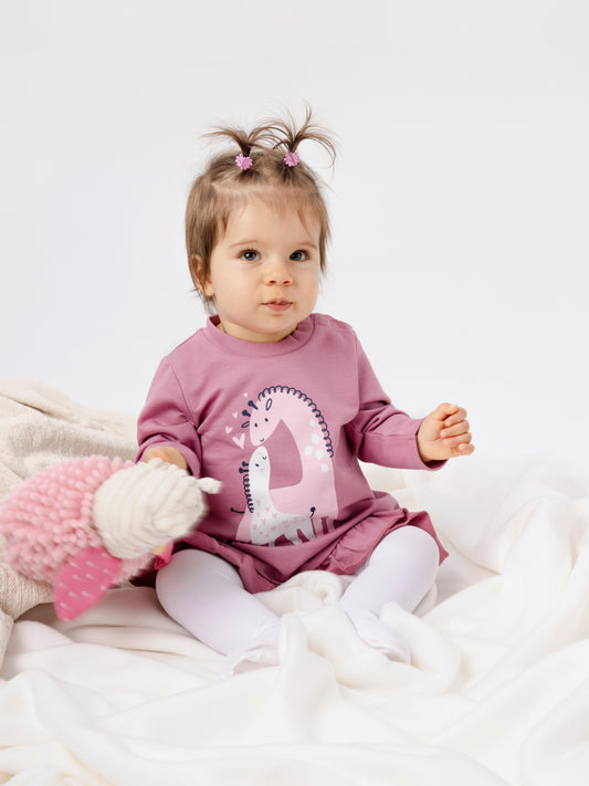 Short Sleeve Flutter Trim Dress with (Baby Kiss) Graphic - Raspberry