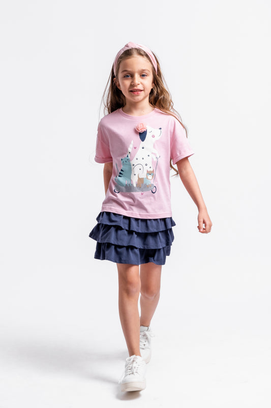 Cherubino Girls' Pretty in Pink Valentine’s Day Skort - Soft Pink Edition