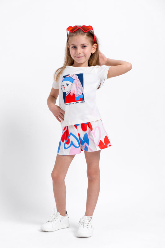 Cherubino Girls' Love Blocks Embroidered T-Shirt – Soft Combed Cotton in Ecru