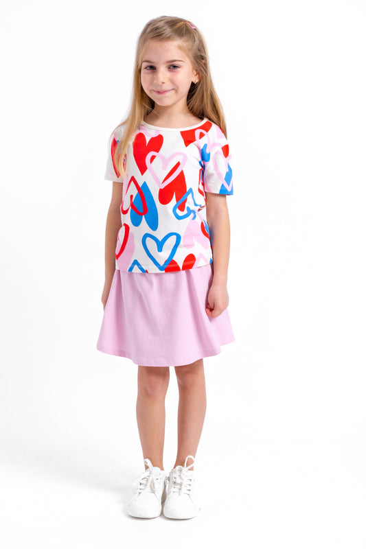 Short Sleeve T-Shirt with (Heart) Graphic and Emboidery - Pink